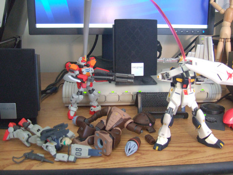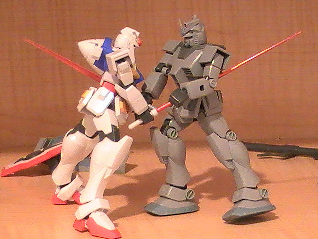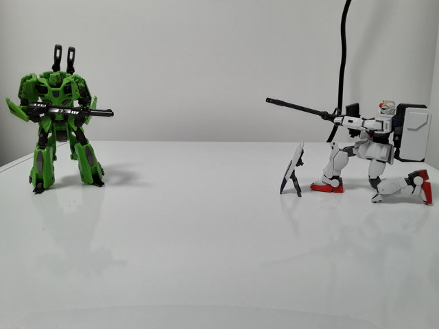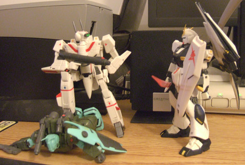 Conflict, though sometimes heartbreaking, can be so photogenic! The Robotech guy on the left says "Talk to the hand" to his pleading colleague in the middle, while the Gundam on the right trys to decide if he should interfere...Related content