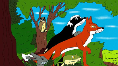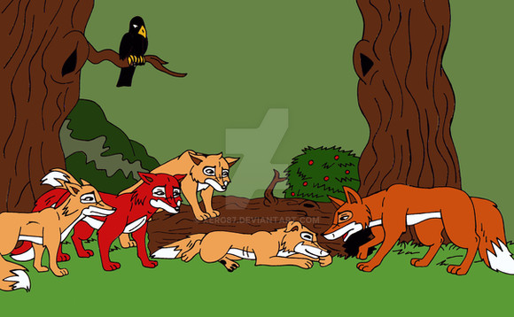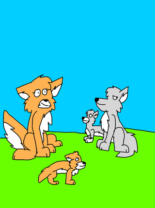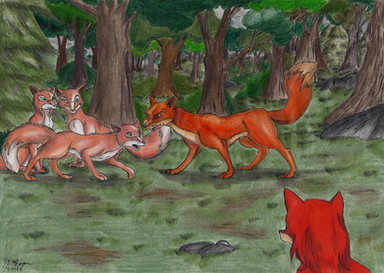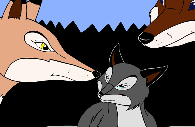 Kerrik facing off an angry wolf while Thelio observes, shocked, in the background.I drew this some time after the others. I never named the wolf in the foreground, but I'll get to that eventually