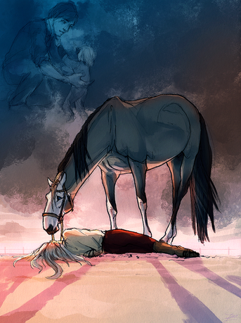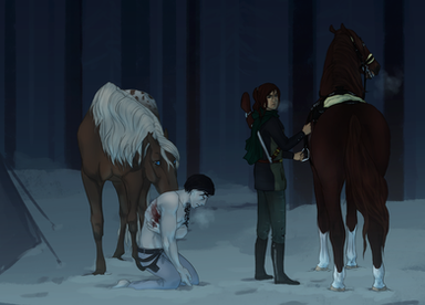 It looked like it was around 5 years old, but had pretty long black hair and a greyish darker skin. A young boy. But oh, why did his face look so familiar to Ash? Those eyes, those lips… oh, oh no. “Diaval, have a seat.” Jack lifted the child onto his lap and ran a hand through it's hair. The smirk on his lips never left. “Murray, I have some wonderful news for you, you were already a father! The daddy of a monster. The daddy of my pet.” He continued to play with Diaval’s hair and suddenly a way too familiar smirk also appeared on the kid’s lips.