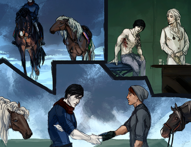 Riley looked away: “I’ll wait until Lia’s woken up again, make sure she’s alright, then I’ll work on the plan to free you from Zakhar, but I need more information. See if you can get a little more around in this building, we’re almost blind.” “What about your son?” Riley stayed silent for a moment. “I-… I’ll try, I guess.” He stood up and walked to the sleeping Lia, taking her hand and brushing with the other through her hair. “For her.”