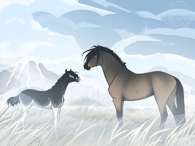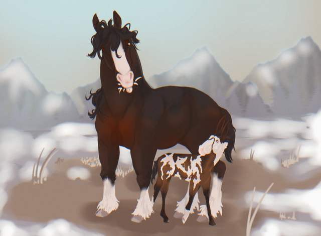 Mikael and Dzhin look so majestic together, I love how calm and poised they look traveling through the forest together, like true fashion models! c; you truly are the master of the soft velvet coloration, I can't stop drooling over those dapples and pink muzzle!