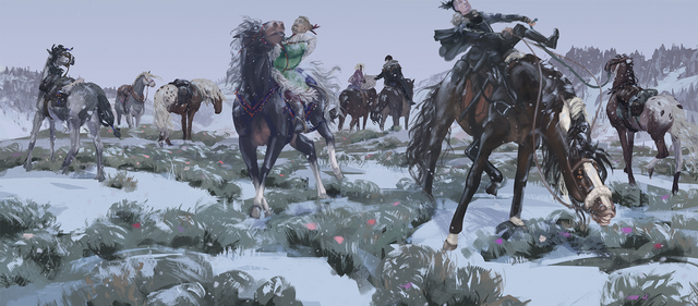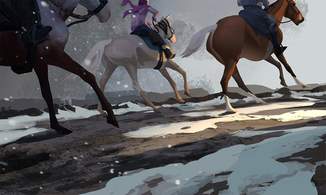 Riley nodded again. "Then better don't waste time." He rode in front with Zena, being aware not to ride too close to the stallion with her.