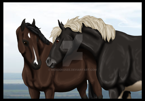 But then! This familiar voice... this soft low calm voice, he heard it... Furiously he was turning his head to all directions... as he spotted him! He hadn't gone! He was right there! He neighed nervously, being upset he had left him there all alone for sssooo long! Trotted towards him, snorting and stopped in front of that tall huge man with the nice voice. Relieved that stallion had calmed down, listening again, Zazu patted his strong neck. "Ohboooyy what are you doiinnn', sillyy~ I was right hheere." And led him off the place, made sure to walk on the side Tazir could see him. Aaaweell, not everything can always go as planned, right?