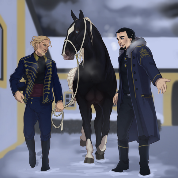 Vachir had been quite concerned for that young man whose horse seemed to have tripped right in front of him. He let Tephra come to a halt and got off despite the stranger ensuring that he would be alright. There was only one solution to help a fellow horseman out - some traditional tea that he had only made few hours ago so it was still rather hot. Vachir too had taken involuntary snowbaths before and hoped the young man didn't get snow into all the wrong places. Unfortunately, his concerned nature caused him to wear a rather 'serious' expression which could easily be misinterpreted as 'grumpy', therefore Jakob ended up unsure how to react at first.
