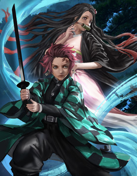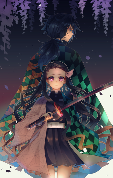 A fan art of the Kamado siblings, Tanjiro and Nezuko from the serie "Demon Slayer: Kimetsu no Yaiba".Related content