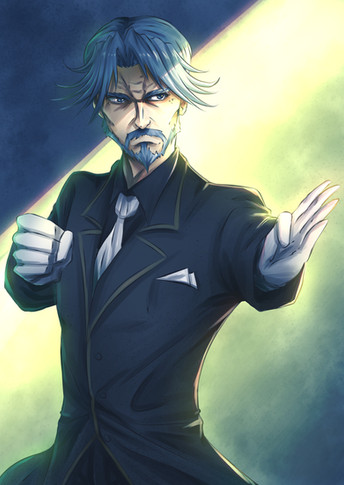Whoa, the red eyes make him look creepy. Like he's gonna betray everyone else late in the manga.
