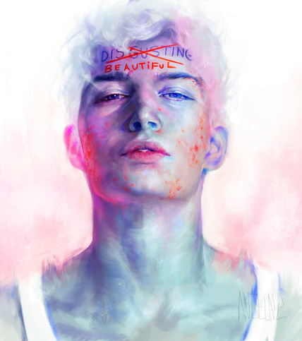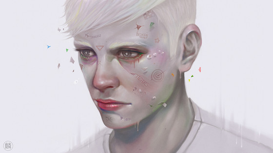 Love they greyish portrait against the subtle colors. They really bring out the emotion in this piece
