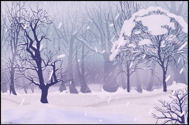 This looks seriously amazing~ The distance of trees and perspective is amazingly executed! Even the trail of him walking blurred off is nice~! And even got some grasses as the place wouldn't really be desolate is a good touch of detail! Yet you don't have too much detail so the drawings really brings out feels of either loneliness or just being cold! Amazing job!