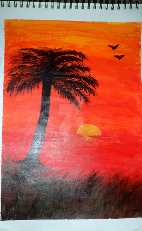 I've always LOVED sunset scenes, and the ocean. Sometimes I swear if I had lived back in the old sailing ship days, I would have been a cabin boy or sailor...if I was a guy. But, even then, it would have been awesome. I love the ocean so much, though I don't get to see it very often. When I do I sort of just stand there and gaze at it for a long time, just soaking it in, before I just run around the beach like a crazy person.