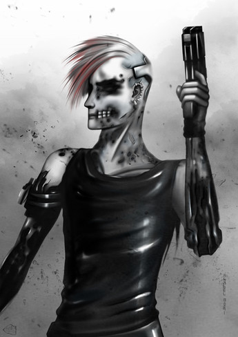 It's not much, but I'm satisfied with it. Don't have much time to be fancy right now, just need to keep practicing.Further conceptualizing a cyborg character of mine.