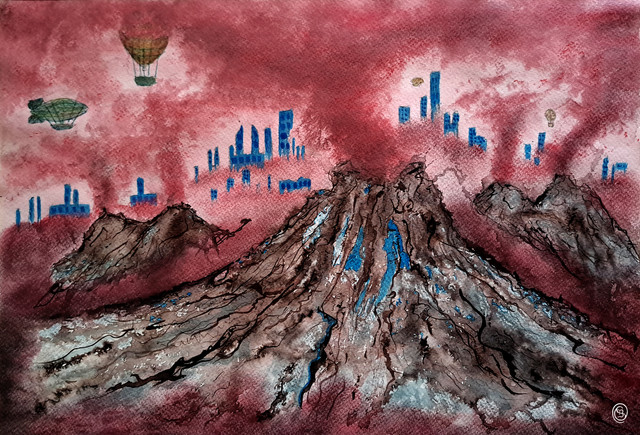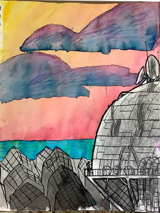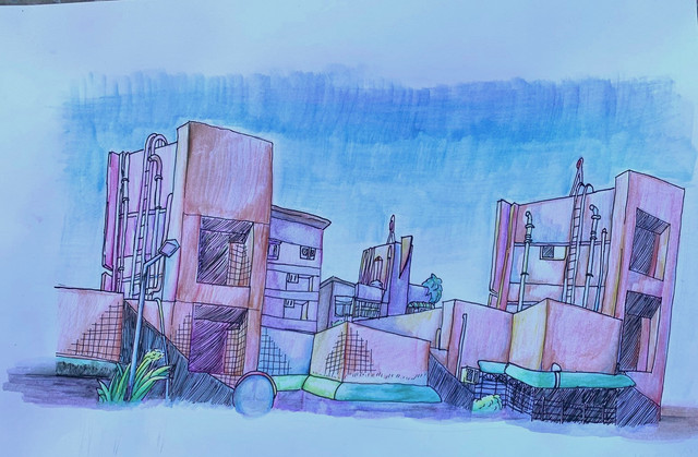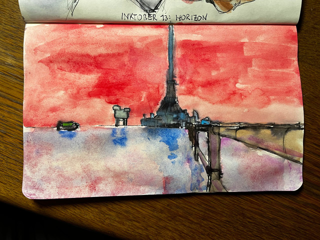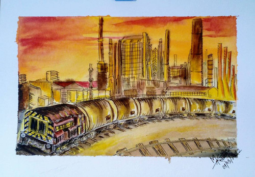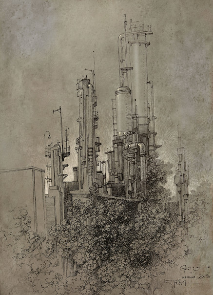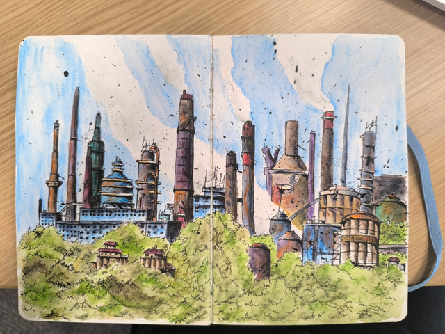 #aquarelle #chimney #dawn #dome #drawing #dusk #factory #illustration #ink #painting #refinery #sketch #sunset #traditional #twilight #watercolor