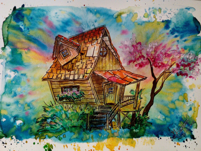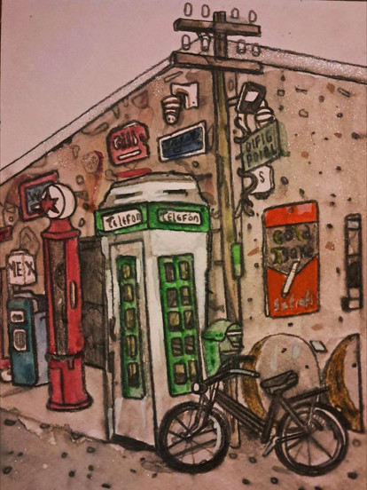 #watercolour #ink #car #pen #sketch #aquarelle #cactus #colorful #dawn #desert #drawing #dusk #flowers #hills #illustration #petrol #route66 #sun #sunset #twilight #watercolor #traditional_art #gas_station #rest_stop