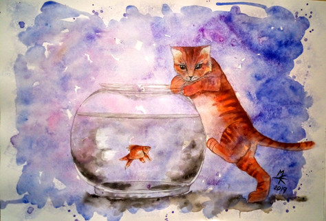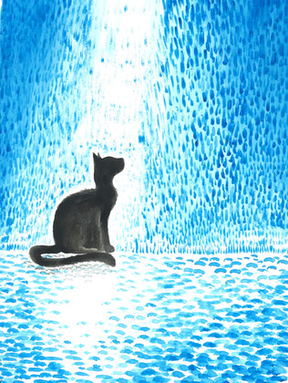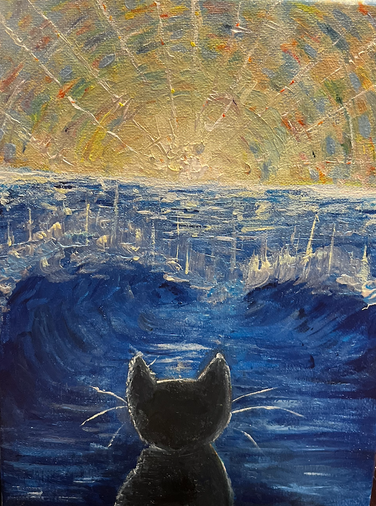 #cat #feline #sky #sea #acrylic #ocean #painting #ripples #seascape #shimmer #shine #stand #sun #tail #traditional #water #waves #whiskers #art