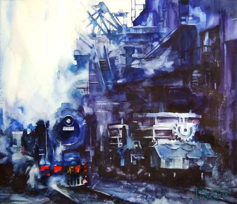 #aquarelle #architecture #busy #chimney #city #cityscape #colorful #dawn #drawing #dusk #factory #illustration #industrial #industry #ink #landscape #painting #pen #sector #sketch #sky #sunset #tank #train #twilight #wagon #watercolor