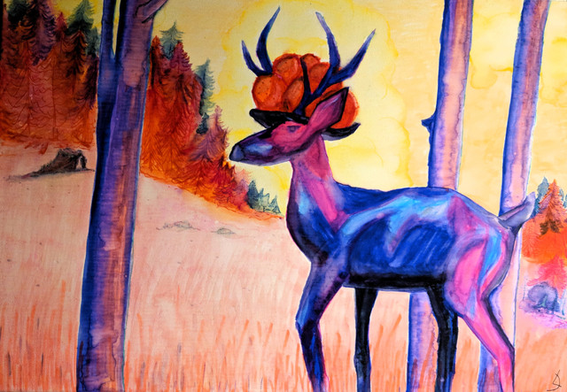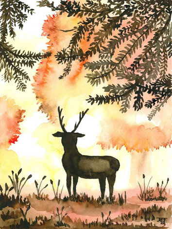 #forest #deer #watercolour #traditionalart #antlers #aquarelle #colorful #drawing #flowers #illustration #ink #pen #rock #sketch #spring #tree #trees