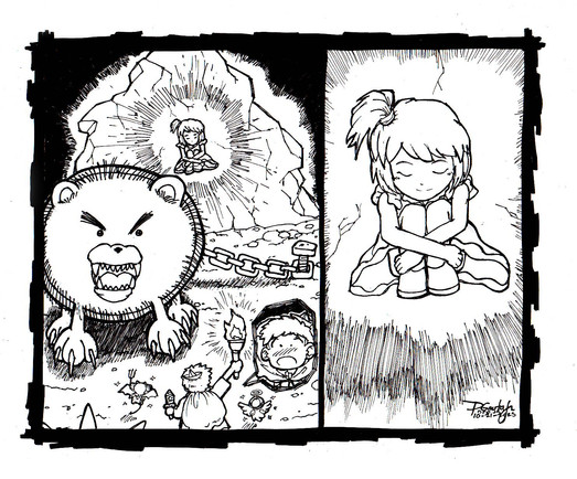 Inktober no #: Day 31 " Fire "" With the power of Angel wings, Demonic sword and the power of the hero, it released a joint force to release a burning Fire on the sword to melt the ice on the Frozen girl. This broke the curse that covered the ice so that the girl could live again.. Our hero saved the Girl and the hero returned to his form.. The hero was surprised and the girl regained consciousness. They blushed and were happy and looked at each other just because they were embarrassed. They all came out of the Mysterious Skull Maze Castle at the same time... And that's where the story ended temporarily in the Inktober One-shot story of our Hero. That's it Thanks for following their journey..Until next time!!!" ππ₯π‘οΈππΈπ―