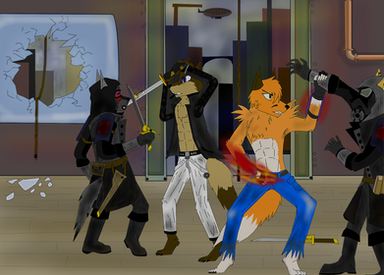 #action #adlet #anthro #combat #conjoined #furry #fusion #jacket #male #mask #merge #multi #webcomic #two_headed #multifur #stuck_together