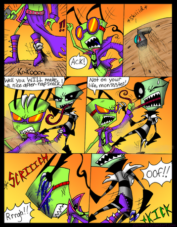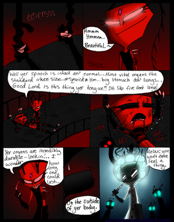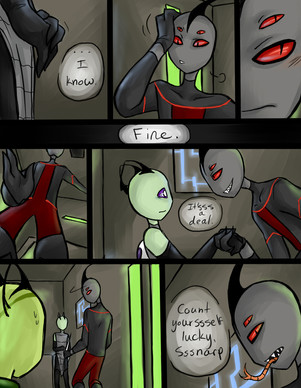 I'm lovin the glow for these pages, the transition from blue to red for this scene... Very fitting.... I love how Zerg's eyes glow all...creepy evil.