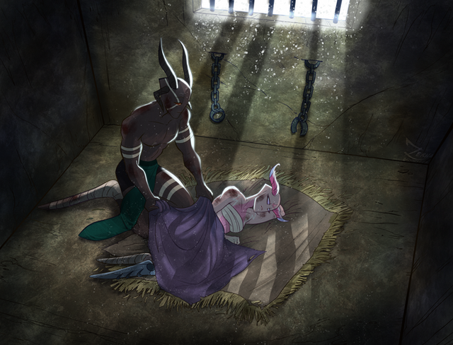 A very fun commission for Volts48 , featuring the Egyptian gods Ra and Sekhmet. Sekhmet was a vicious lioness goddess who tormented mankind for not being respectful enough to the gods, mostly involving murderous rampages. Eventually, the egyptians figured out the only way to stop her wrath against them was to get her drunk. Depending on the story, it's offerings of beer that manage this, and in other versions, she is tricked by Ra himself into drinking jugs and jugs of red-stained beer that she assumes is blood, to get her to stop her rampages.EITHER WAY, turns out hangovers save lives!