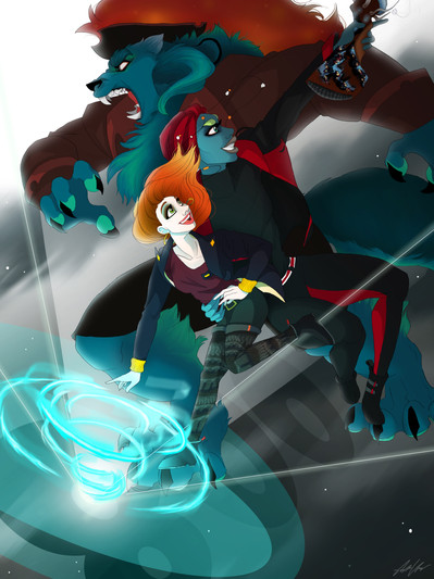 At long last, giant commission for XennyDiemes featuring Havoc and Aynine in their crazy lives! A mixture of sci-fi on Mars and Helluva Boss, and a whole lotta hours of effort on this piece. 8') Big project, thanks very much for the commission and patience! Hope you like how it turned out! Went pretty crazy with the color but it was fun. X)Aynine, Havoc (c)