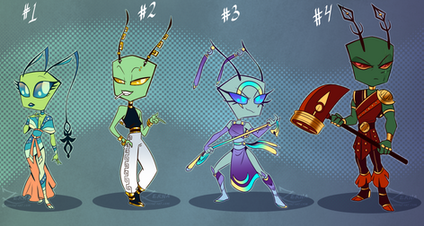 A commission for Geta7 of Gor, a mantis-themed Irken who will give you a smile just as quickly as he'll backstab ya when you're not looking v-vI hope you like it Geta!! thanks so much for the commission!
