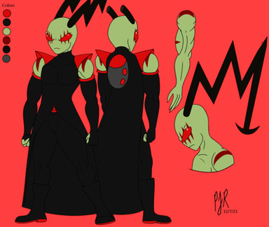 Fibra (Fee-brah) is both a doctor and medicine expert...and a master of toxins and poisons, which he learned about later in life. He has highly sensitive antennae, the smallest of which is a harmless mutation. He is a member of Tex's gang, and operates as both the doctor and the trump card--that is to say, when all else is failing on a raid or mission, Fibra is ordered to send out some horrible toxic gas or poison to simply make the opposition drop dead in their tracks. He rarely leaves the main ship, the Leviathan, preferring to spend his time holed up in his laboratory, coming up with new poisons and more efficient medicines. New medications are a primary concern for him because his boss, Tex, has this REALLY annoying super-efficient immune system that adapts to medication and anesthetic at such a high rate that he quickly becomes immune to the medication itself.