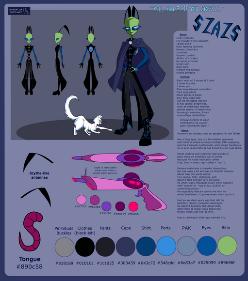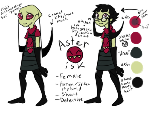 hates the irken empire, 5 ft 10" and specializes in martial arts.... the things I learn when finally actually studying ur ref sheets.... those r 3 things my character has in common with nuic