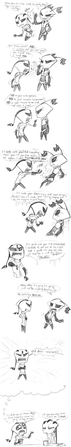 Woah more canon characters *squees* and ZADR. lD I love this so much, they look great in your style and they're very canon. ^^ Except for the romance part of course xDΒ I'm trying to figure out what's just happened in the bottom left image though..Β