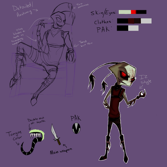 I originally adopted Zeith here from many years ago. <3 He's fit in well with my bunch of OCs since then.Age: 22 in irken years