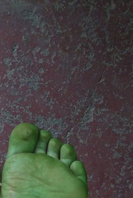 A picture I took of today before I left (Don't kill me sweetie. I like the pictureThis picture was edited a little just to make the color stand out some more but trust me his hands really looked like this, he was covered in chalk before I had to leave XD. My favorite part of this major in college though is seeing everyone all messy. That's how you can tell they're working ;3