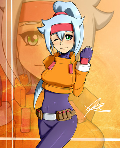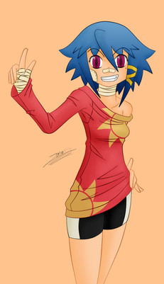 Another character I don't draw often enough.Following the death of her parents in an attack by a rampaging monster, Aries was visited upon by a God, who offered her great power and the ability to travel back through time to destroy the creature and save her family. However, Aries, being a bit of an idiot, travelled back too far and was unable to go back, thus she was forced to wait for the time in which the creature would appear in order to take her revenge, her newly-bestowed God powers having made her unable to age. Said Godlike powers make Aries one of the few people who can fight Kai on even-footing. Although driven by her goal, Aries is also very easygoing and cheerful. She admires Kai for her great power and kindness, but especially her big boobs.