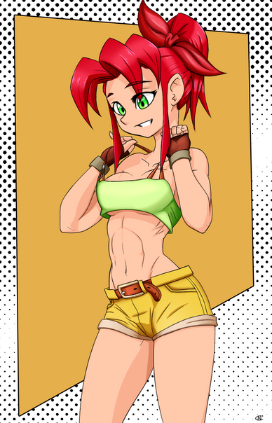 She looks like a really cool tomboy and I love her small boobs a ton! She also looks really strong!
