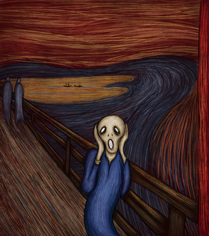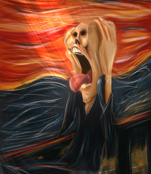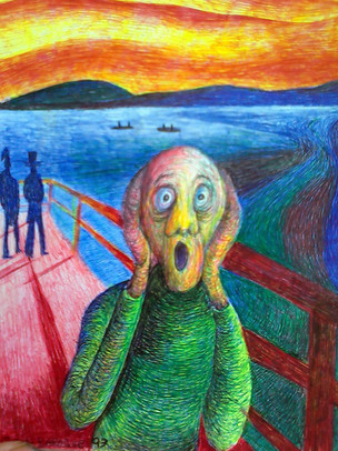 en effet [du moins si tu le remarques c'est que ca doit l'être sinon se serait pas vraiment réussi si cela ne se voyait pas] ma version , ma reponse à mon très cher edward munch si de son temps c etai un cri d extase qu'on à longtemps pris pour un cri de peur , dans mon cas je serai moins enthousiaste et ne cache pas le cri que j'ai comme image pour nos "belles années actuelles"