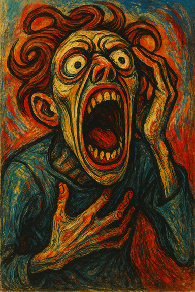 ton cris ,c'est pas un cris de terreur a proprement parler, on dirait plus un cris d'hysterie; folie de douleur je sais pas comment expliquer... quand sa explose que l'on craque sa donne sa. Je pense