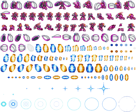 Yeah, first investigator, Commander Yammark (コマンダー・ヤンマーク). An interesting design. I also love the hell out of Iwamoto's prototype version from Giga Mission (P2 is an attempt to match). In the sprites, the way the visor and trim barely overlap with the main color made this a fun one. That being said, no complete sheet exists for this jerk. I figured out REAL quick that I wasn't going to get this 100% game accurate, and I made peace with that. Still, ripping a few frames wasn't out of the question