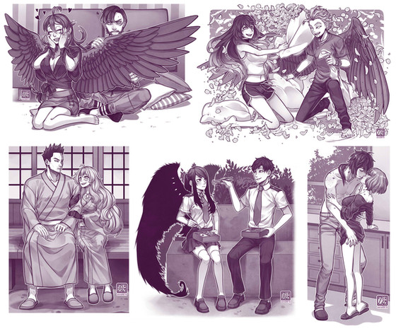 By the way. The sketches of them were quite old - old enough to make me notice all the anatomy mistakes while doing the lineart (that I didn't correct *cough*). I felt sorry to leave them just like sketches, so I slapped some color on and goodbye everyone.
