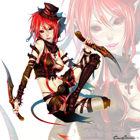 her outfit design is stunning ^^ and her eyes and blades are wicked >