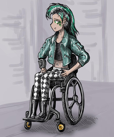 That's a really cool OC. I've never seen a character in a wheelchair. Really original