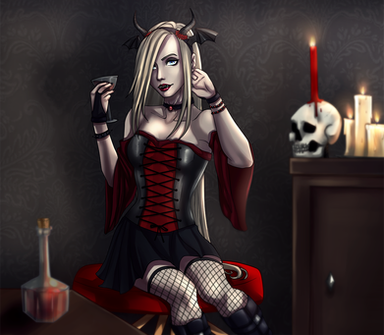 Figurati zero0810 ! Mi sembra così misteriosa, e il suo essere darkettosa ne esalta il fascino che mi da' l'impressione di non voler mostrare del tutto! Poi è buffo sapere che la cosa che ti ha messo più in difficoltà in questo lavoro siano state le bottiglie, diamine, in tutto questo le BOTTIGLIE?! Regalami un po' del tuo talento XDD scherzo eheh.
