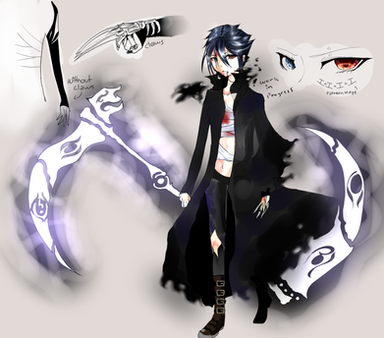 His weapons are beast ! I mean, look at that scythe ! I wonder where do you find all the imagination to produces so incredible OCs.