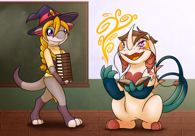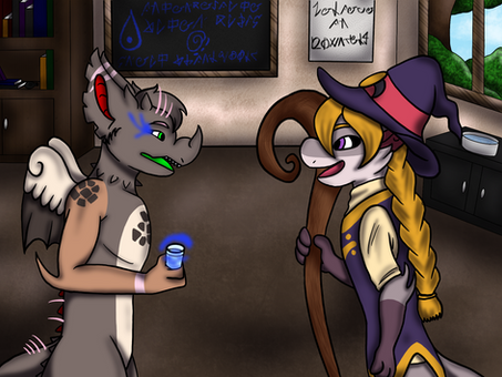 Borealis wasn't looking to forward for this lesson when Mrs. Netty said she planed on making the room humid. Bore tries to minimize her fur and hair getting wet since she has so much of it. It get's knotted and tangled so easily, it's why she tried to hide as much of her fur under clothing as possible. Yet she still did the lesson with all her effort and as quickly as possible, waiting for Mrs. Netty's approval before she can run off and quickly dry her fur and hair. Also Thistle seemed to be having fun playing with her beebs and tyke.