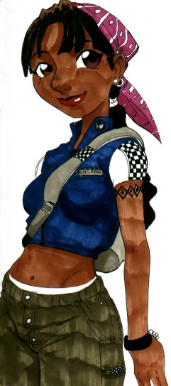 This is Charlotte Evans. She's the Rival to Audrey Bryant in the book. I espcially designed her to look like Kyoko from Rival School. heheheh. Anyway her story is that he mother used to be good friends with Audrey's Coach until a torn liagment sidelined her career. She blamed Audrey's coach for the injury and trained her daughter to be the best. I know it's a terrible premise but it's Basketball manga.Related content