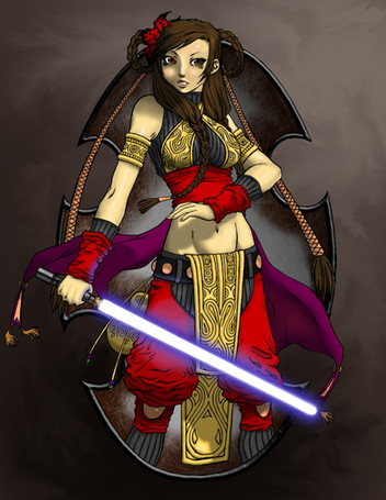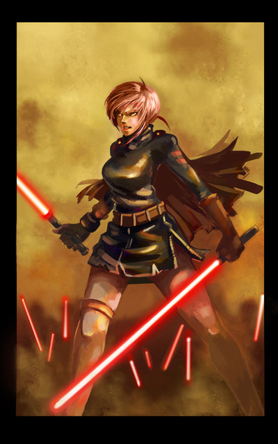 Dang, the Darkside must be realyl on her side! It must be hidden in her eyepatch or boobs, heh-heh! ^^ Awesome pic!
