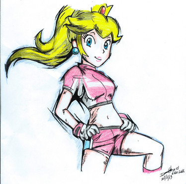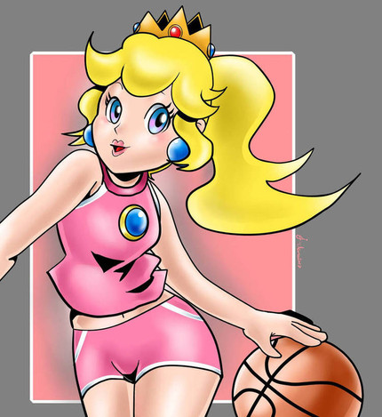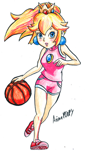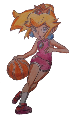 It's Princess peach from the Mario Bros games in NBA Street V3. I did a sketch a while back. [link] I finally got around to coloring this bad boy. to ~canebrake I'm sorry if the marker is streaky. The twins told me about it too late after I was 2/3 done. I will work hard to break out of this habit so please don't kill mePrincess Peach (c) Nintendo
