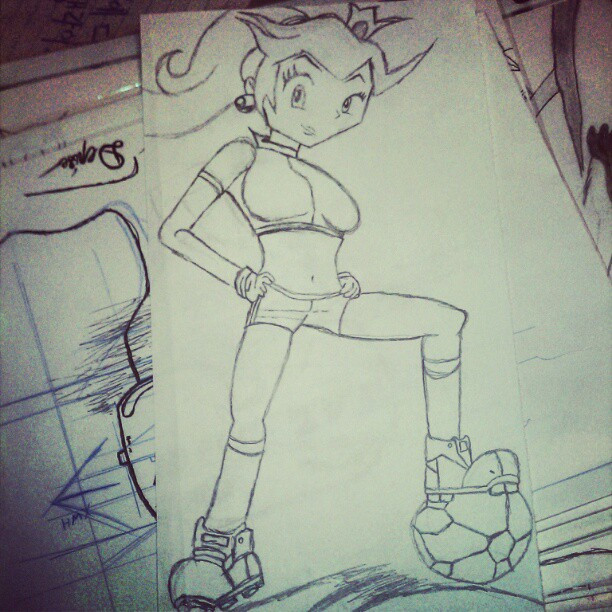 I love her dynamic pose and her expression, I also like the variation of her basketball outfit that you designed here.The perspective is simply impressive, I love this image!