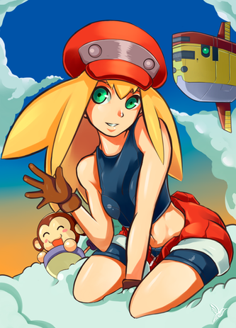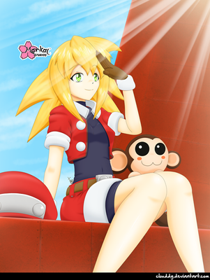 This is Roll Casket and Data from Megaman Legends/Rockman Dash. This is actually one of my favorite pics out the set. I love how Mario added the sky to give it a light feel to it. Like always I did linework and Mario did the colorwork.