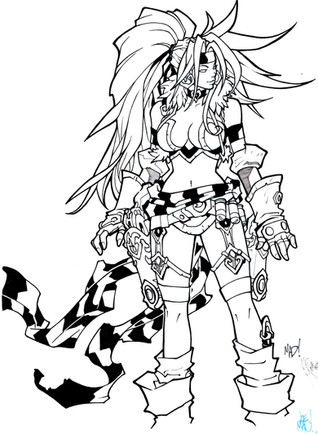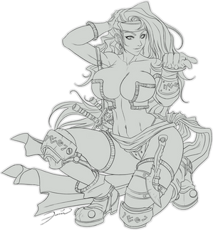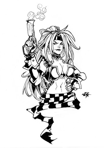 This is Beatrix from FF IX. This was done for [ECAU] 's FF doujin. I know her finger is out of place. Like always I did the linework and Mario Barraza did the B & W.Final Fantasy (c) Square Enix