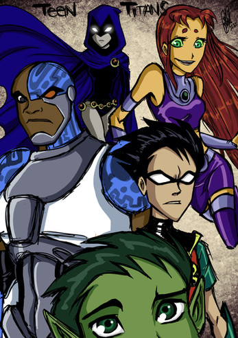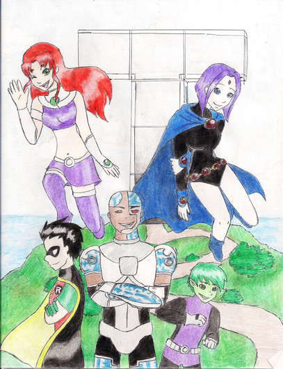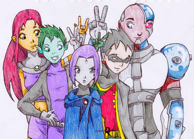 This is the colored version of the Titans pic I did a while back. I know Starfire is a bit dark but I guess later on I'll ask Mario to lighten her up. hehehehTean Titians (c) DC Comics