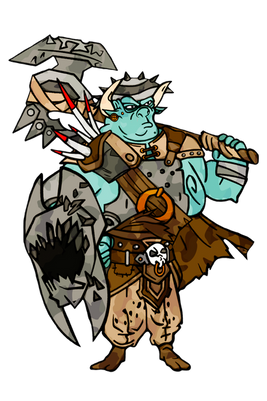 The Half-orc barbarian Ragnolf. About level 16.Check the armor helm at the next drawing.