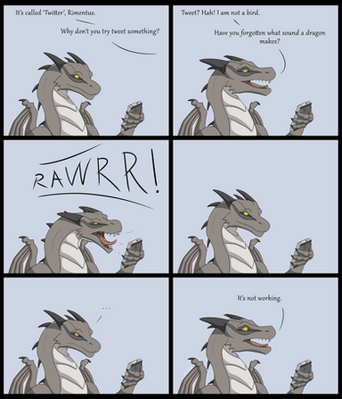 This was a comic I did for my Creative Class. I had no idea what to do, so in the last minute I drew a dragon.I got Photoshop but it's not what I had in mind at all! I still ended up drawing this in Corel, but I colored it in Photoshop, and used Photoshop to do the text and speech bubbles. Still experimenting on the best way to use both Corel and Photoshop. It's a great tool, but I cant figure out how to use it for drawing.